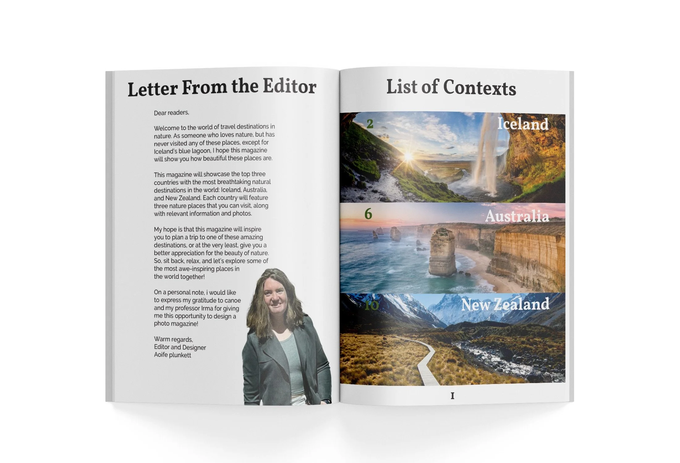 The project seeks to create a travel photo magazine for a Student Canon competition, Which i did not win. This magazine will highlight the beauty and adventure of travel through great photography. It aims to produce an attractive publication that showcases unique places, experiences, and cultures worldwide. The goal is to tell stories through images, appealing to both photography lovers and travelers, while reflecting Canon's mission to capture inspiring moments.